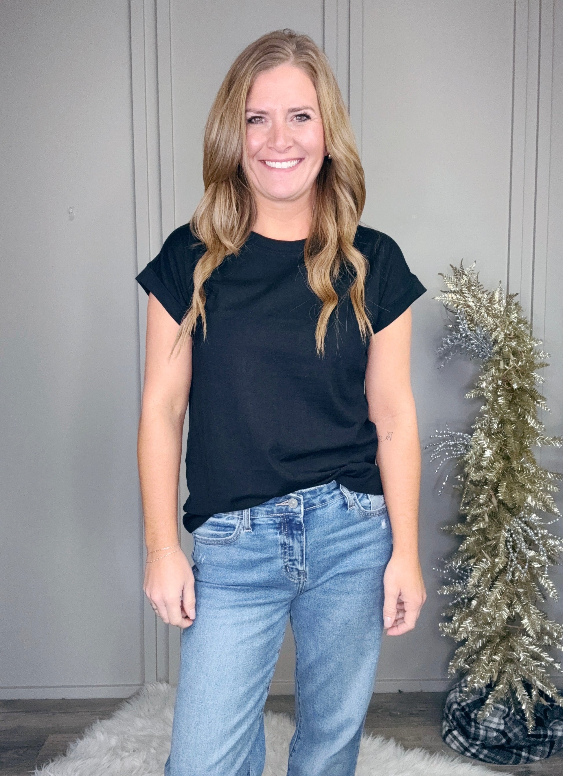 This is probably the most worn tee in my closet folks. Literally goes with everything! Great to layer, great worn as is, great with jeans, great with leggings. Ok you get it 😁