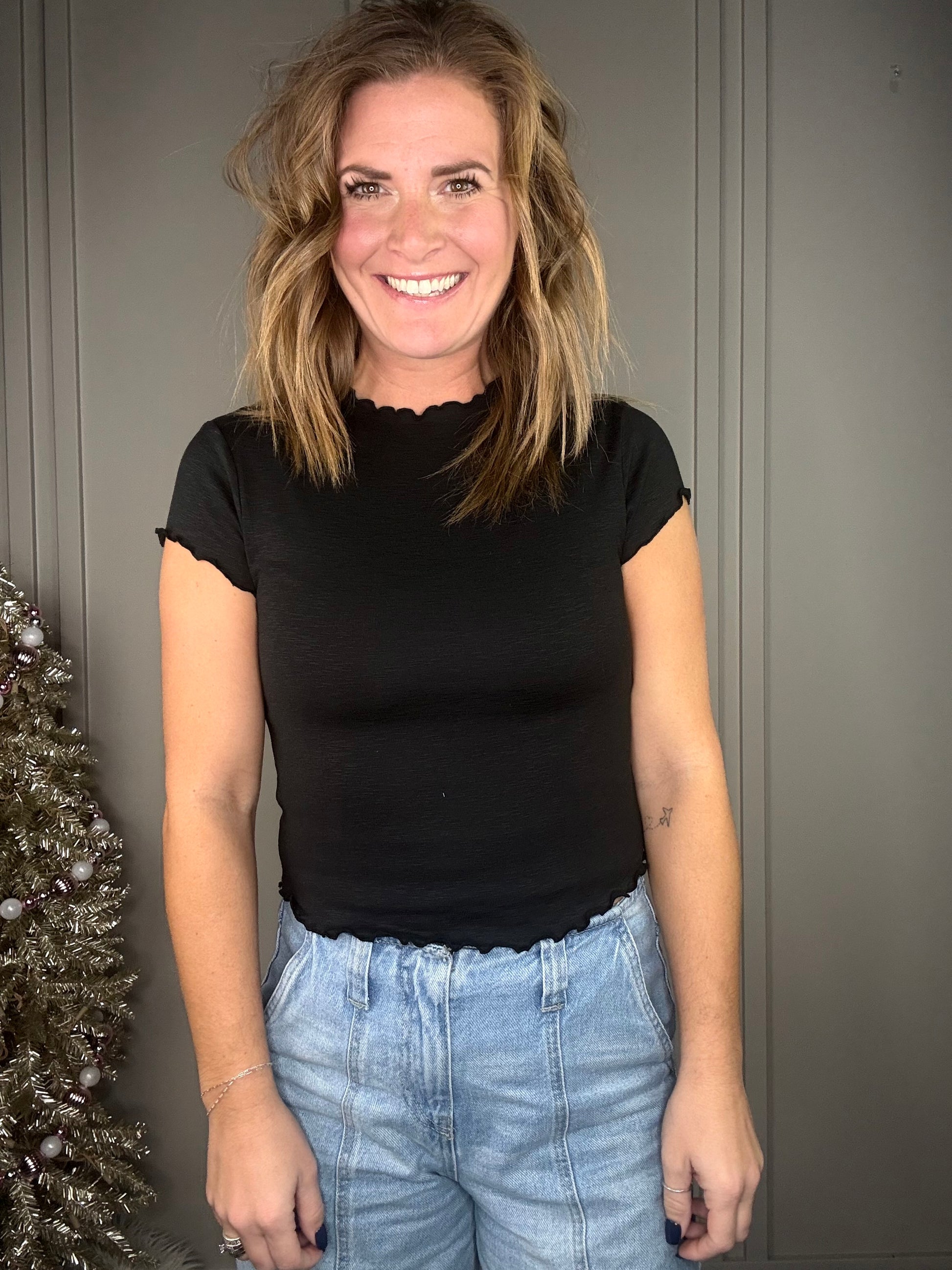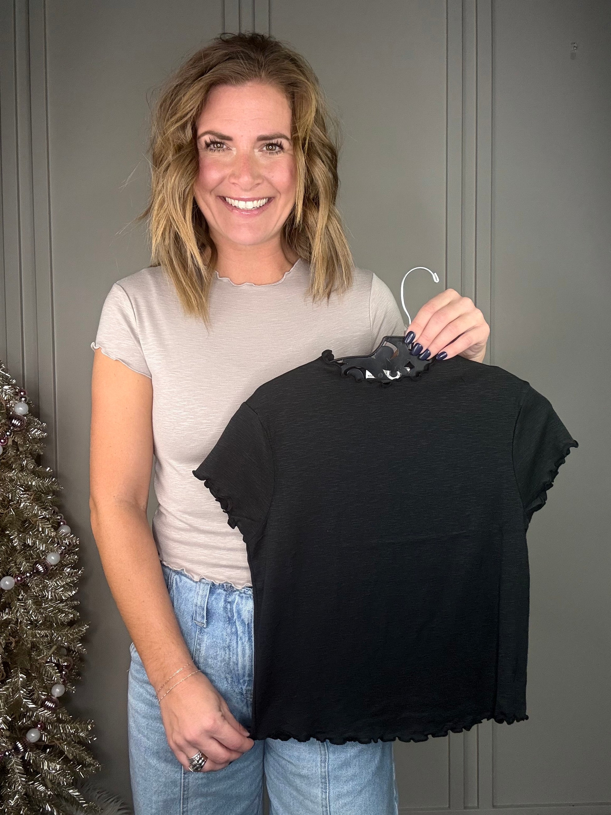 A fun detail to a basic tee with that trim! Great basic colors too. You probably need one of each!