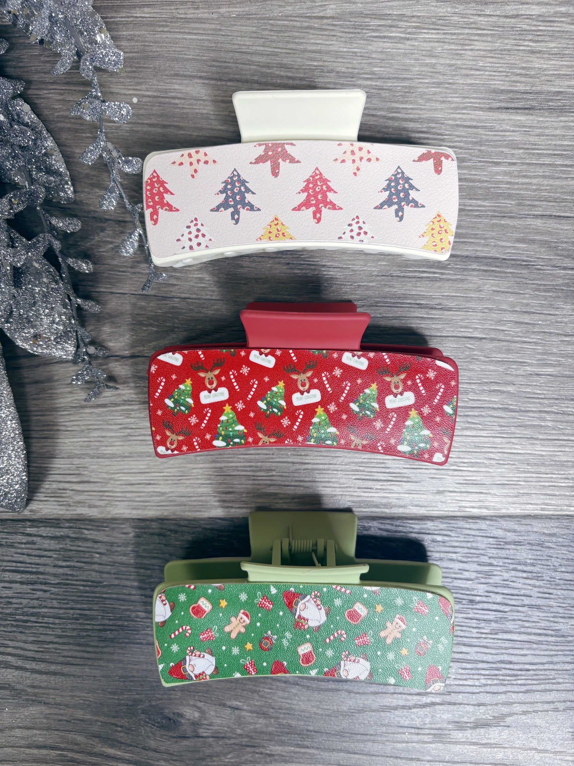 -BF- FAUX LEATHER CHRISTMAS CLAW CLIP