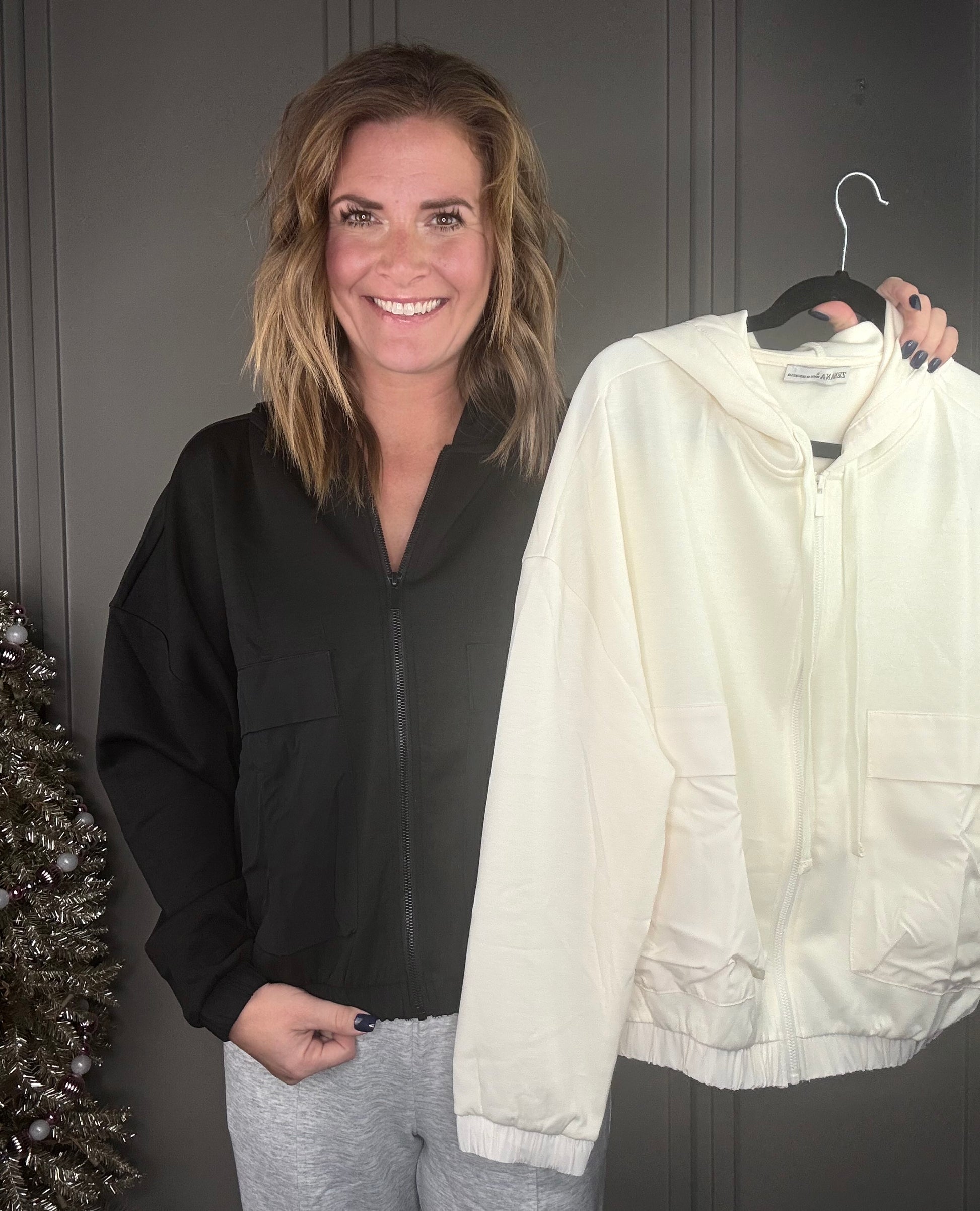 Pair this with our scuba joggers or wide legs or your favorite jeans! She's a great layer to add to any outfit.