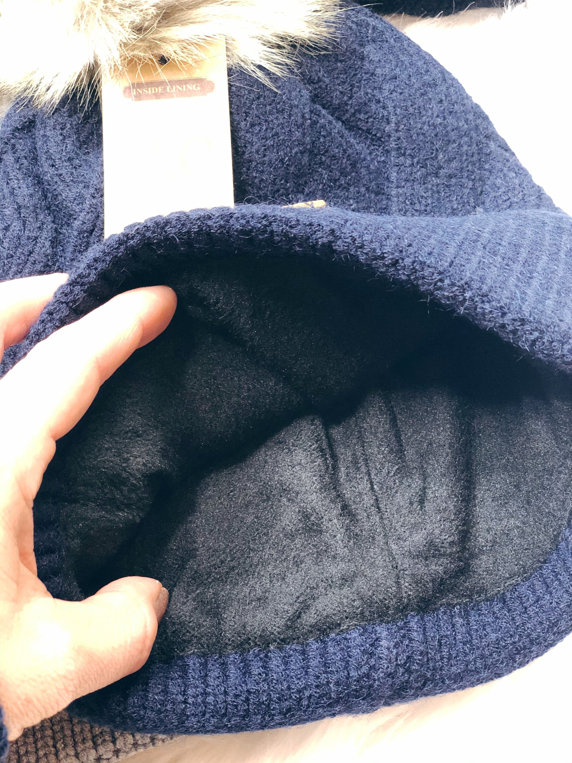 C.C. CABLE BEANIE W/ FLEECE LINING