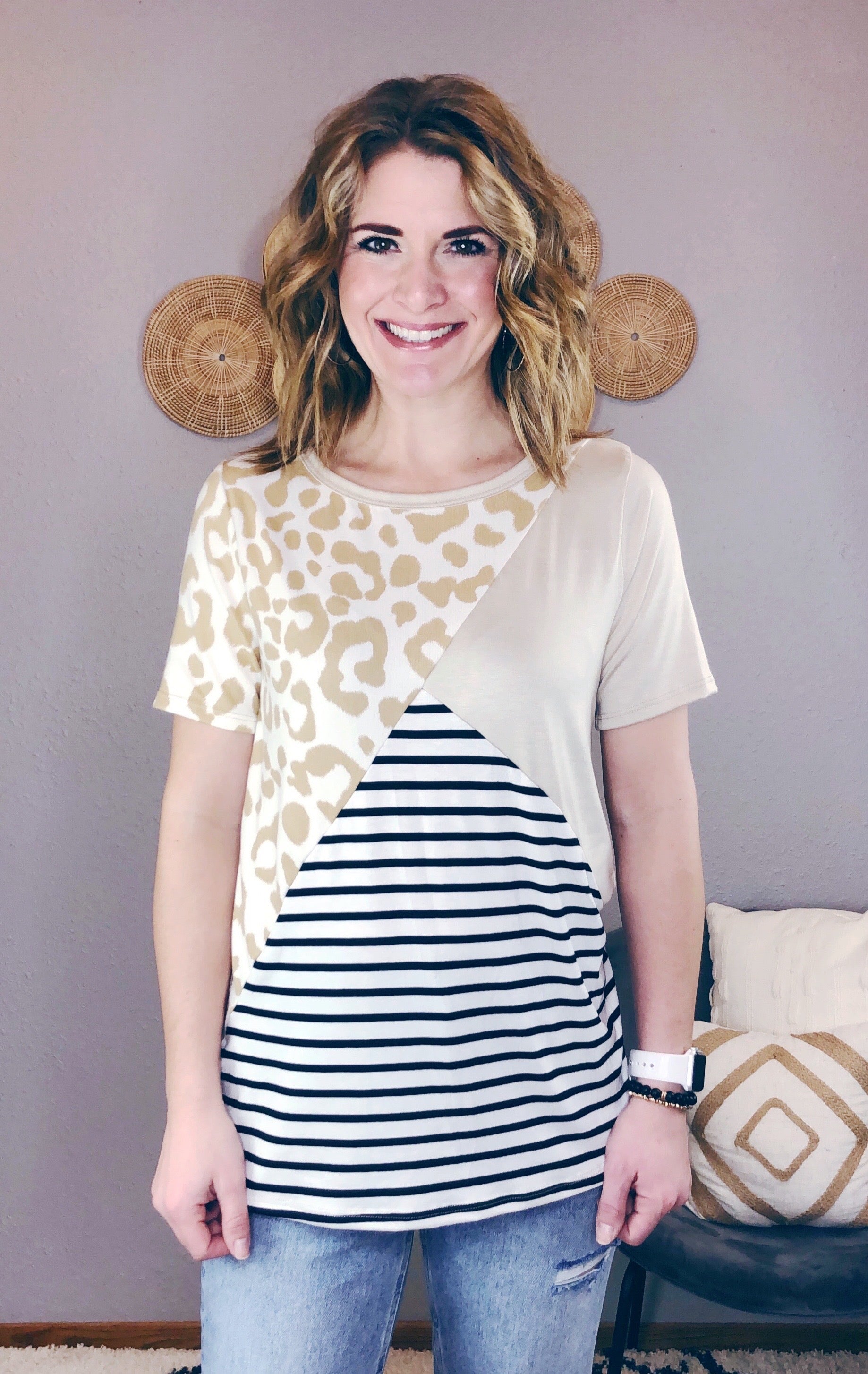 LEOPARD + STRIPES COLOR BLOCK TEE