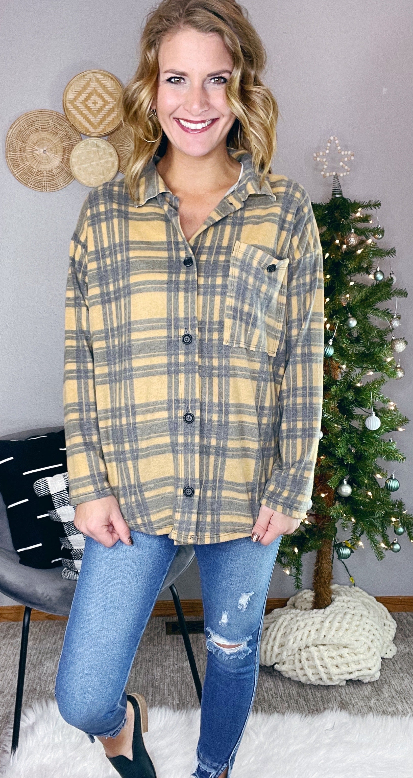 PLAID OVERSIZED BUTTON UP SHIRT