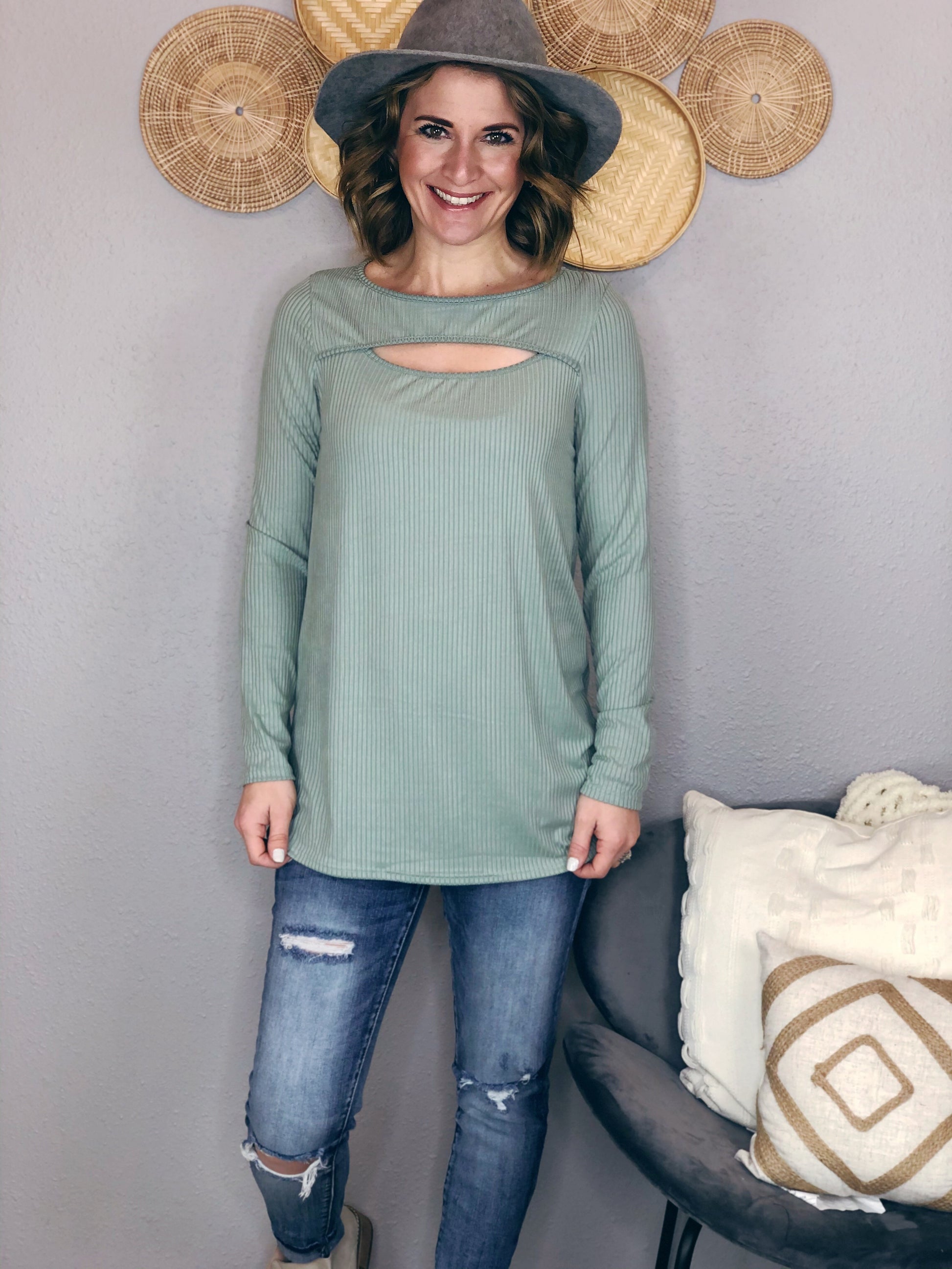 RIB KNIT TOP W/ PEEK A BOO CUT OUT