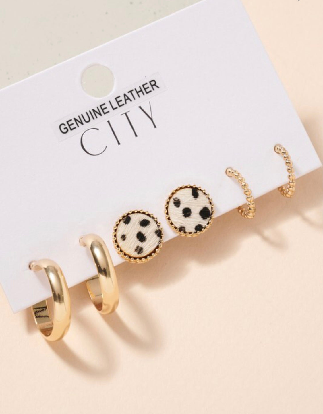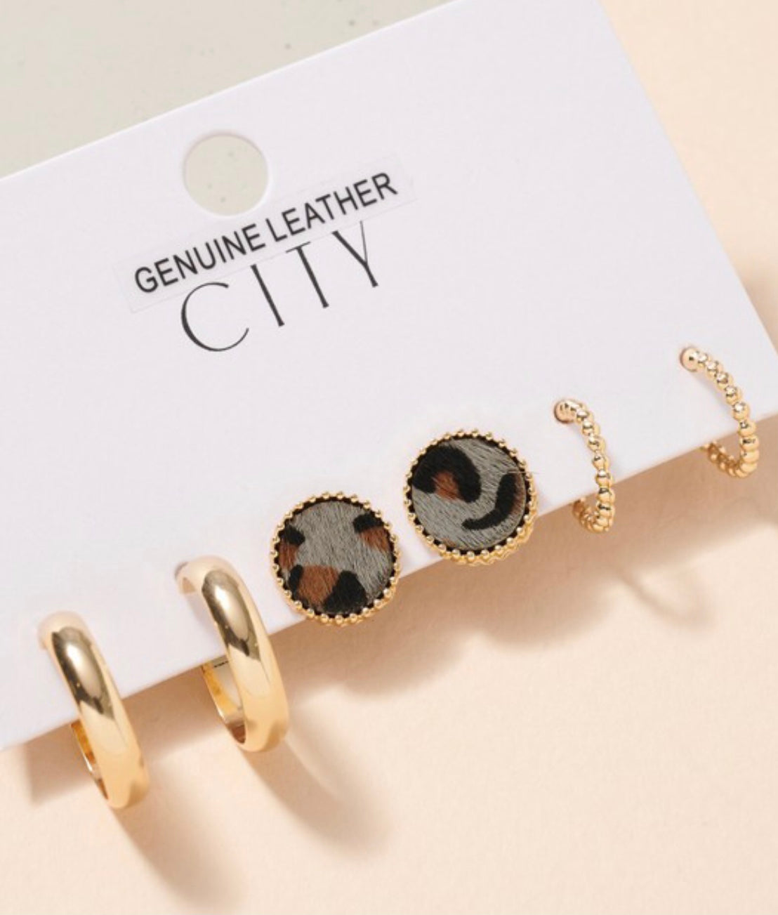 SET OF 3 EARRING HOOP AND ANIMAL PRINT