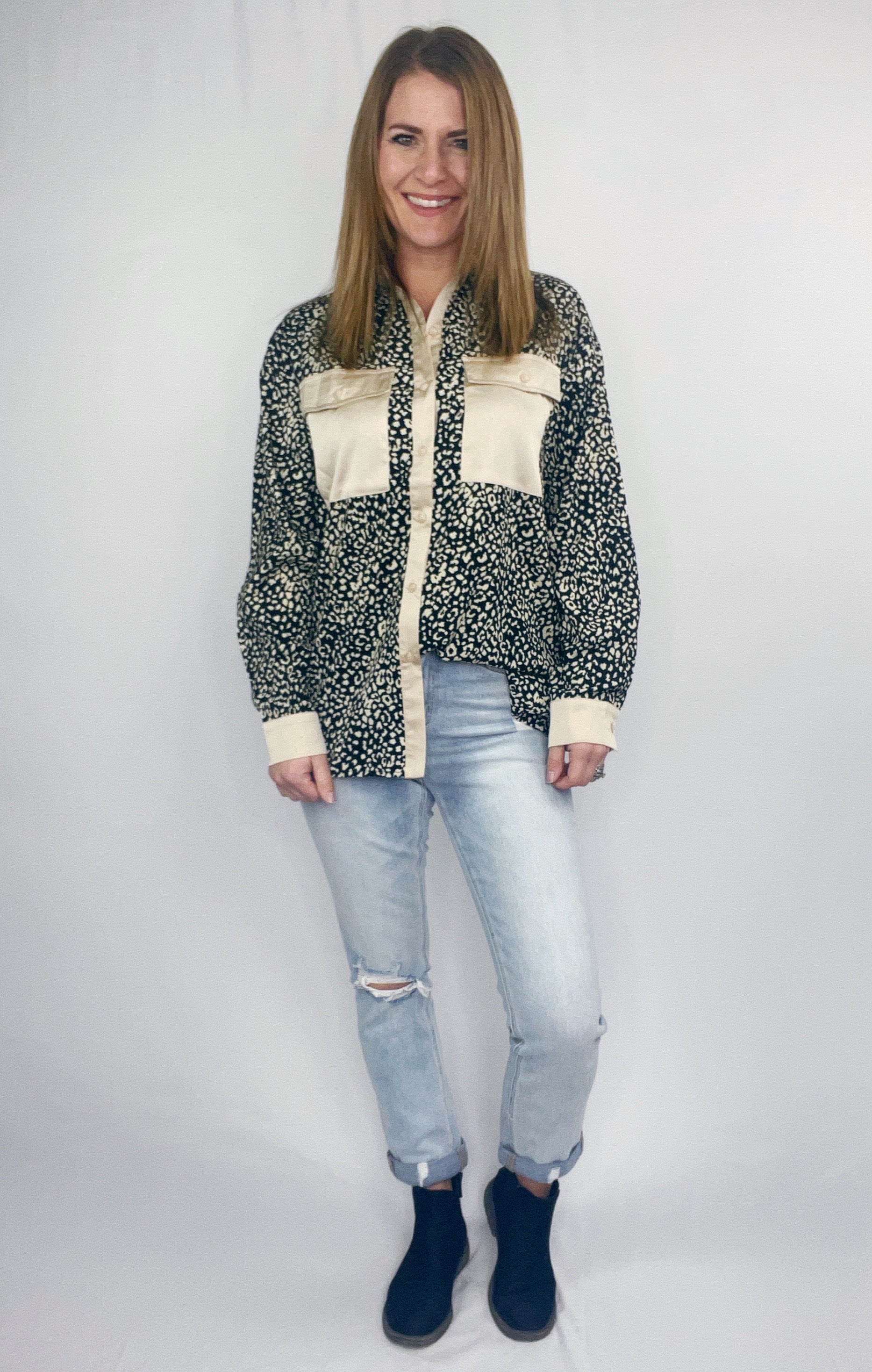 SILK LEOPARD BUTTON DOWN W/ POCKETS