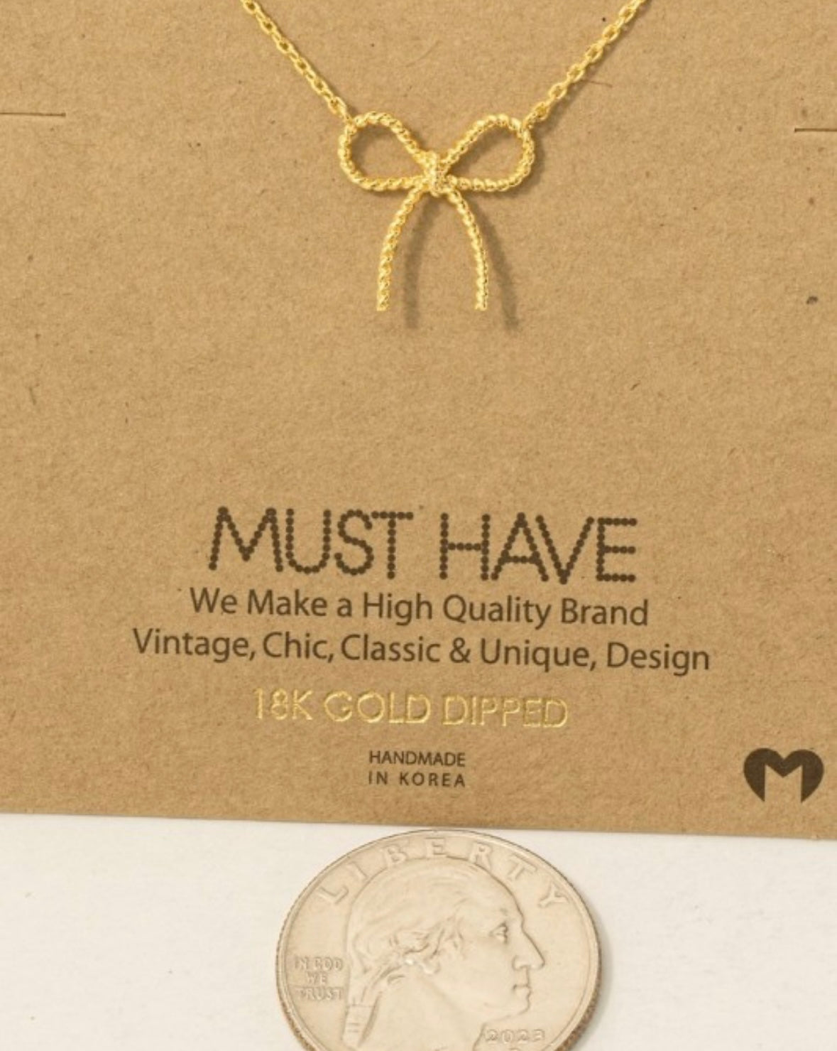 Bows are sure on trend and I’m here for it with this dainty accessory. This necklace is 16” in length.